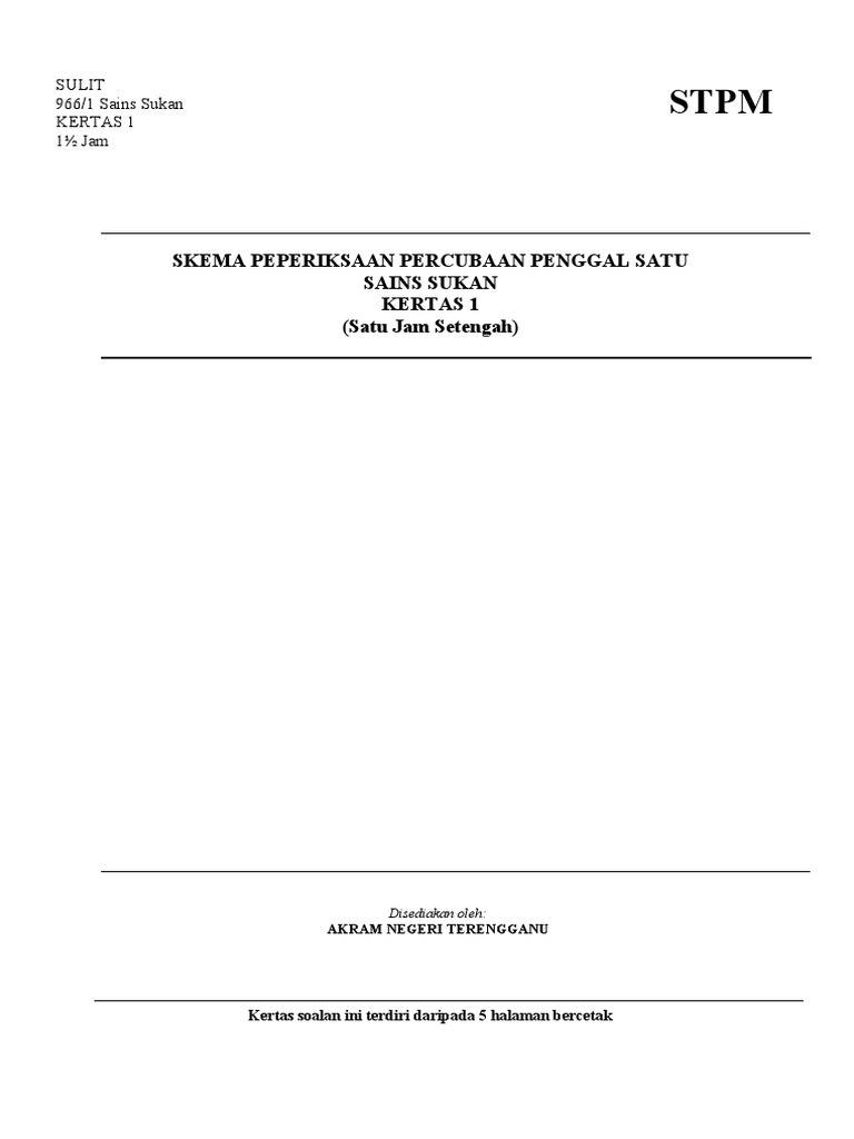 Sains Sukan Kertas 1 Stpm Peperiksaan Percubaan Negeri Pulau Pinang Pdf